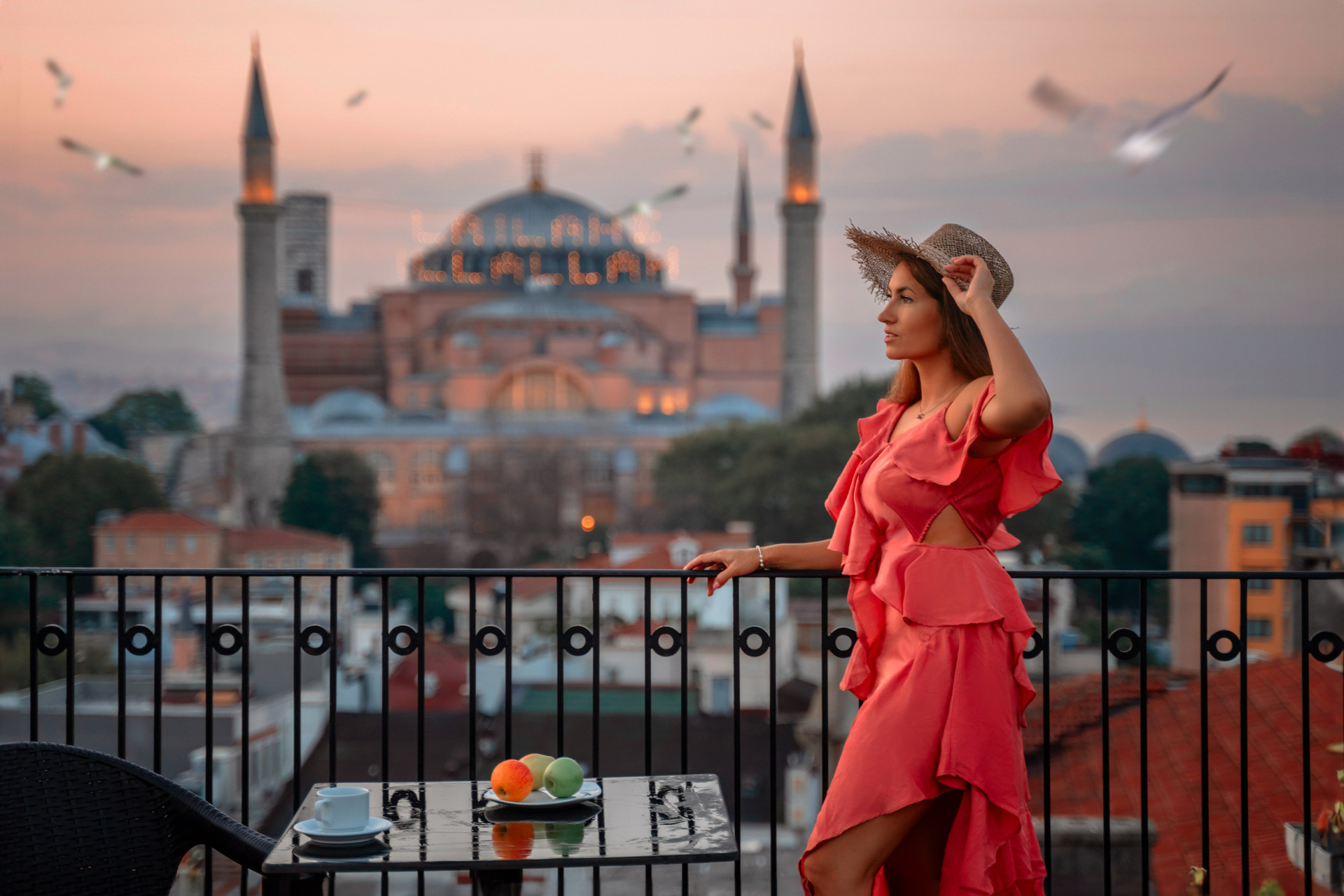 Рано утром нас ждёт первая съёмка — на террасе нашего отеля с панорамным видом на Стамбул.